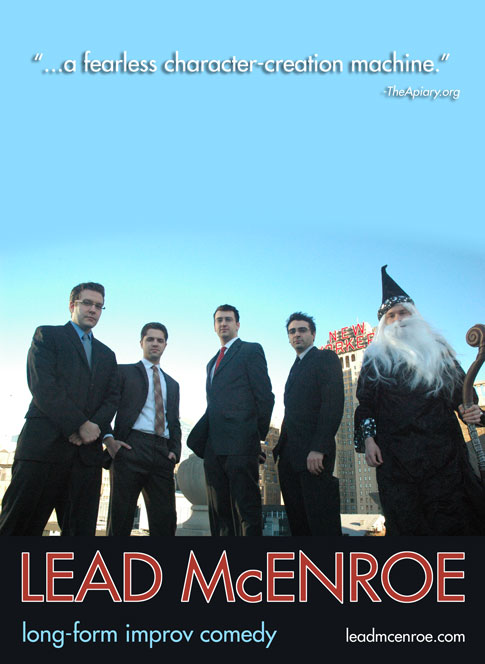 Lead McEnroe is: Long-Form Improv Comedy. Lead McEnroe is: Mike Barry. Nick Benaquista. Tim Eberle. Don Romaniello. Rob Williams. Lead McEnroe is: "...a fearless character-creation machine" --Phil Wells, TheApiary.org "...hilarious nonsense..." --Myles Hutto, Charleston City Paper "...absurd